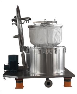 待分離的物料經(jīng)進料管進入高速旋轉(zhuǎn)的轉(zhuǎn)鼓內(nèi),在離心力的作用下,物料均布在過濾介質(zhì)上進行脫液分離,液相透過固相物料和濾網(wǎng)縫隙,經(jīng)鼓壁孔甩至機殼空間,從出液口排出機外,固相物料截留在轉(zhuǎn)鼓內(nèi)形成濾餅。停機后,由專用吊具將濾袋連同濾餅一起吊出至指定地點,松開卸料口,將濾餅卸出。